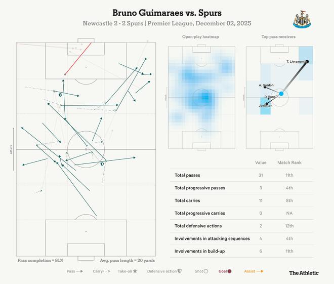 北京时间12月3日,英超第14轮,热刺客场2-2战平纽卡,赛后,The Athletic发表专题文章,分析并点评了本场比赛。