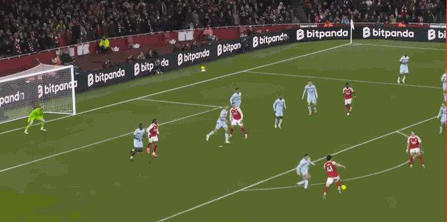 伤停补时阶段,梅里诺送出直塞,萨卡闪开角度左脚射门,凯莱赫虽然扑到皮球但无力阻止皮球飞入球门。阿森纳锁定胜局。