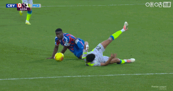 第50分钟,水晶宫反击,伊斯梅拉-萨尔突入禁区扣球被破坏