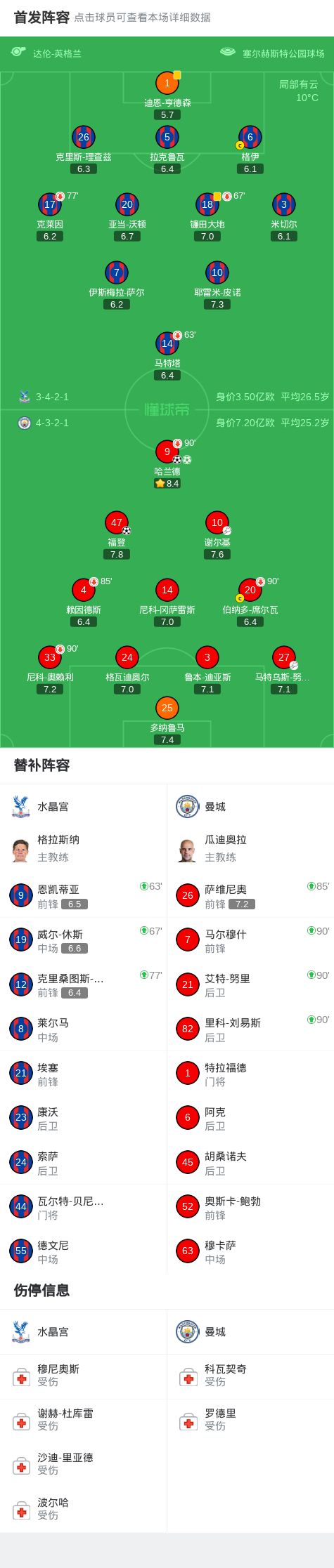 北京时间12月14日22:00,英超第16轮焦点战,曼城作客塞尔赫斯特公园球场挑战水晶宫,本场主裁判为达伦-英格兰。上半场,努内斯助攻哈兰德头槌破门。下半场,谢尔基助攻福登贴地斩建功,萨维尼奥奔袭造点,哈兰德点射再下一城。最终,曼城3-0客胜水晶宫。