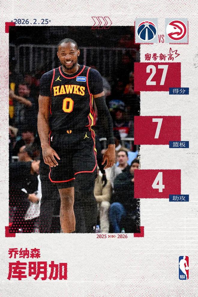 库明加首秀12中9得27分 老鹰胜奇才