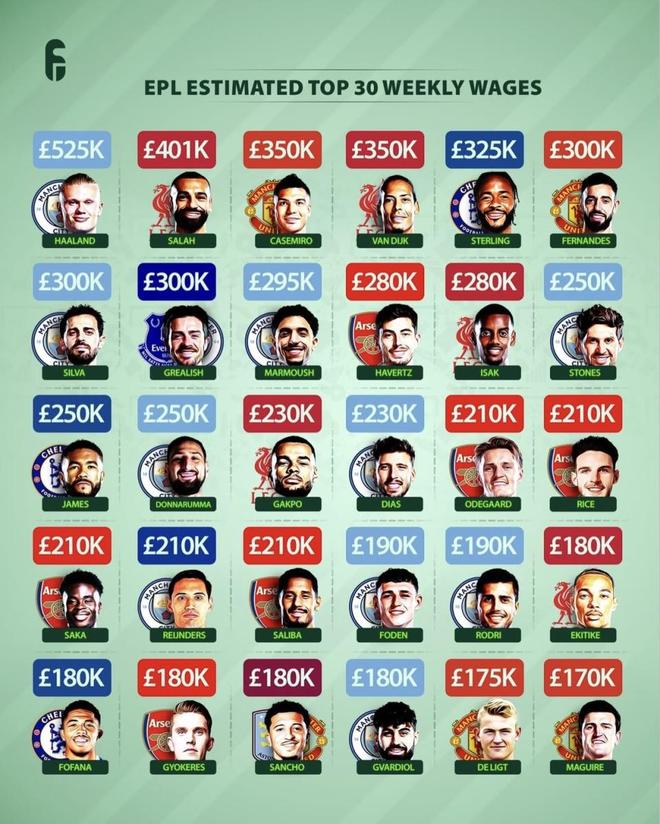 最近足球媒体发布一份《英超预计周薪Top30》榜单,哈兰德、萨拉赫、范戴克等球员都在榜上。52.5万镑、40.1万镑、35.0万镑几个档位摆在一起,顶薪层的差距一下就拉开了。这份名单只列30人,英超里不少同样拿高薪、名气不小的球员也未必都在里面。周薪说白了就是俱乐部掏钱的选择,这30个人里谁最值、谁最不值?(数据截至2026年2月6日)
